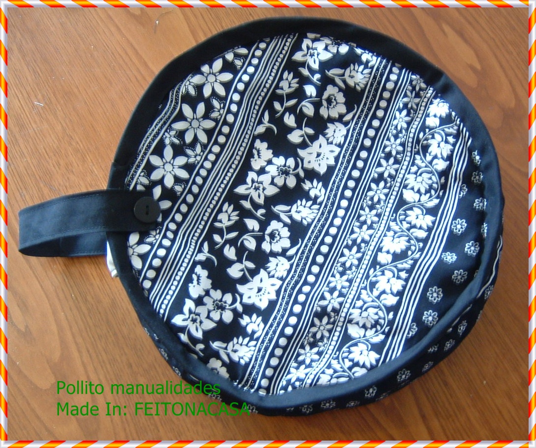 Le dí vueltas y más vueltas (y no porque fuese a ser algo cilíndrico), dupliqué la boata para que fuese más acolchado todo, ideé cómo poder meter y sacar la pandereta (es decir, poner cremallera a la galleta) y por supuesto, un asa para agarrar...